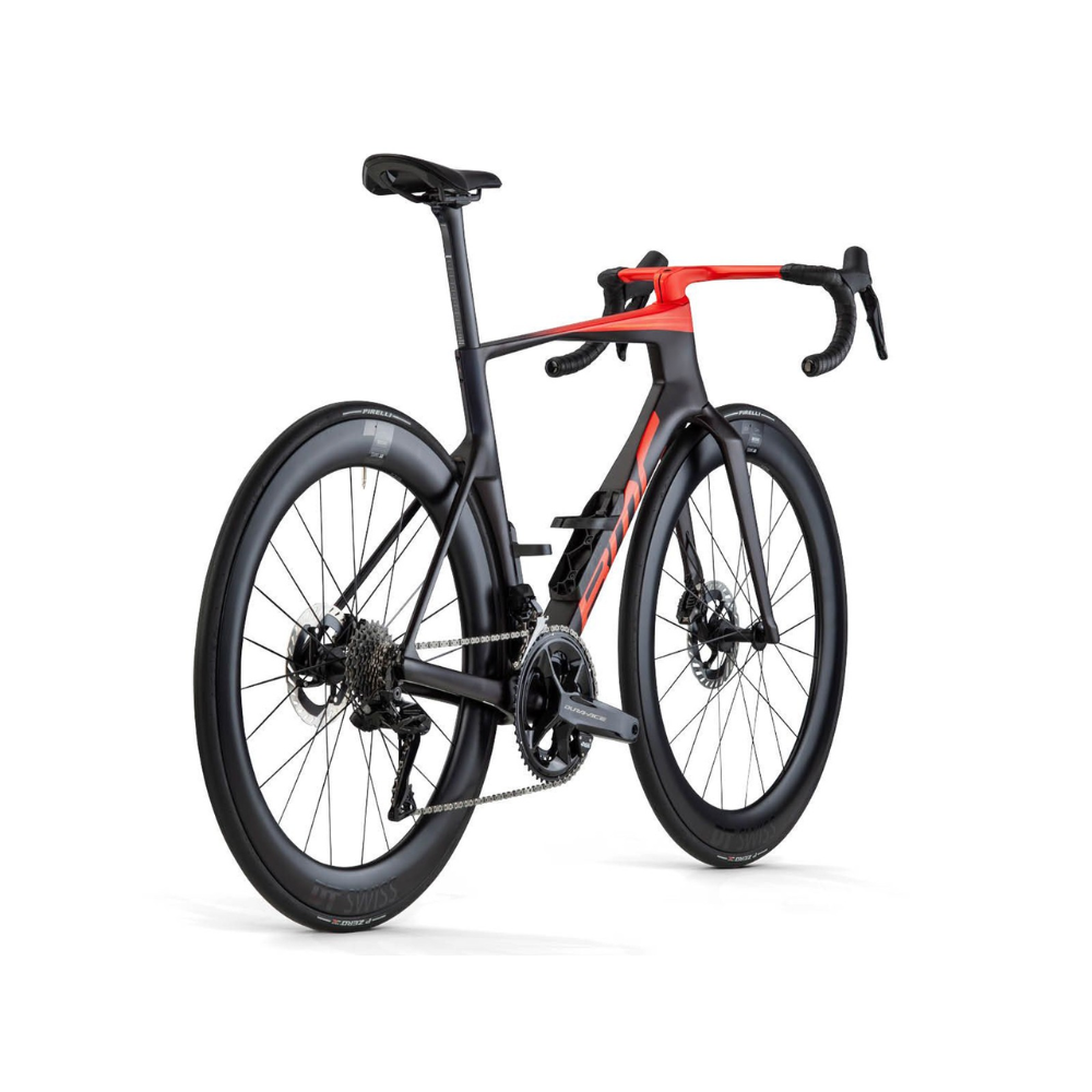 The ICS Carbon Aero Cockpit, with its progressive and aerodynamic shape, is the perfect match for this bike. Featuring a narrow top width, allowing an efficient aero position with a greater width at the drops providing incredible control at high speed.