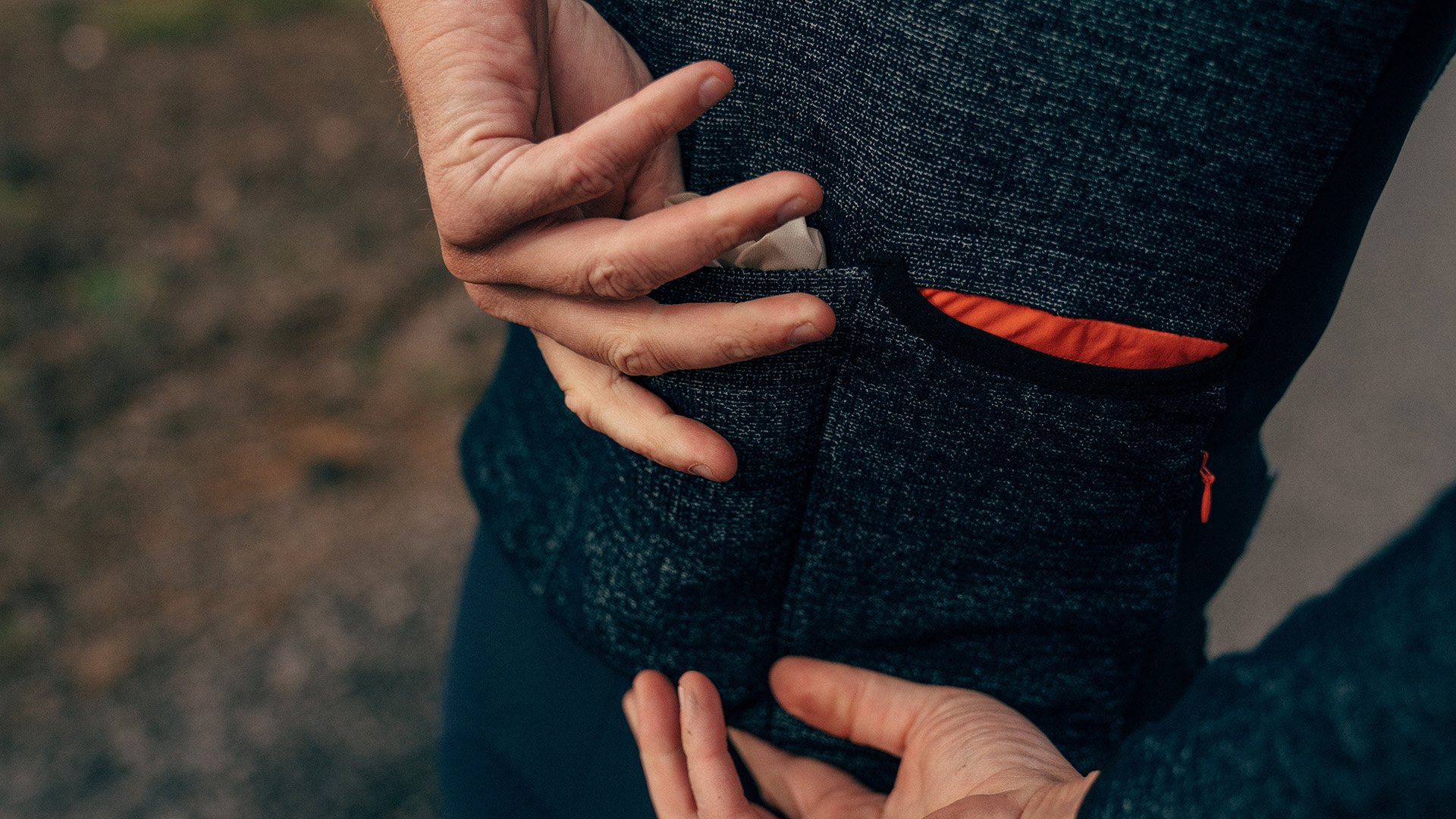 The jersey features a full zip with guard, a zip pocket for valuables and three cargo pockets which offer ample storage and are cut with a convex design to reveal a contrasting red lining.