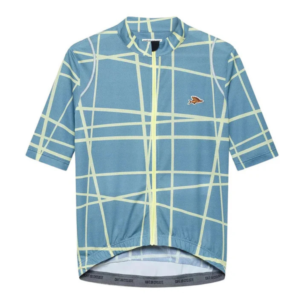 The CAFE DU CYCLISTE Mona V2 Cycling Jersey in Deep Water/Naples Yellow is a technical cycling garment designed for road and endurance cyclists. It is intended to provide comfort, breathability, and performance during rides in varying conditions. This jersey is suitable for training, racing, or recreational cycling.