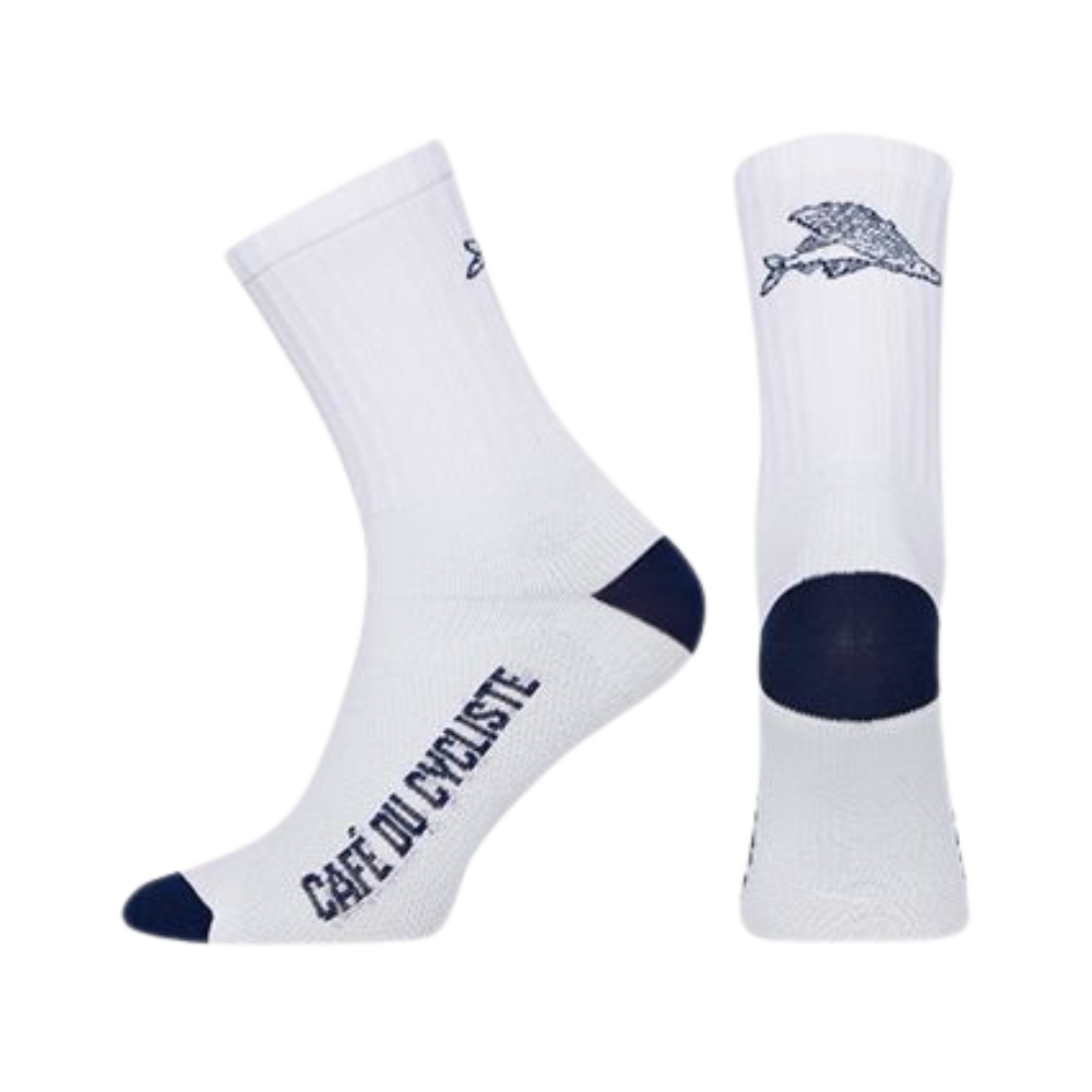 These socks with a flying fish motif use a specifically selected technical fabric chosen due to its durability and breathability. They are high wicking and fast drying while anti-blister yarn is included for added protection while riding.