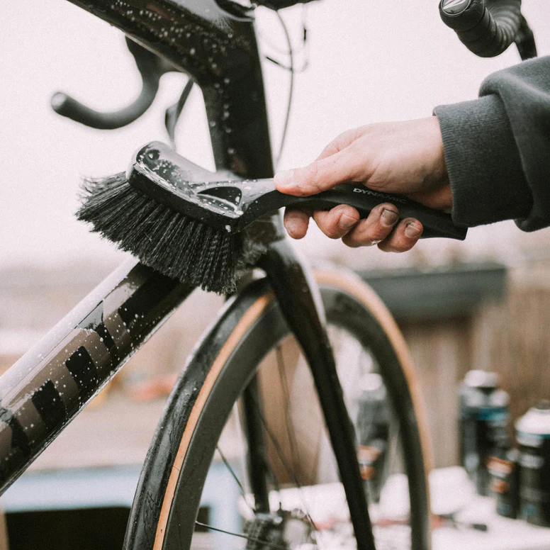 The Two prong brush is specifically designed to remove dirt from your fork, seat- and chain stays. The flexible brushes are ideal to reach even the narrowest areas of your bike. The tough nylon bristles are soft on your frame and tough on dirt.