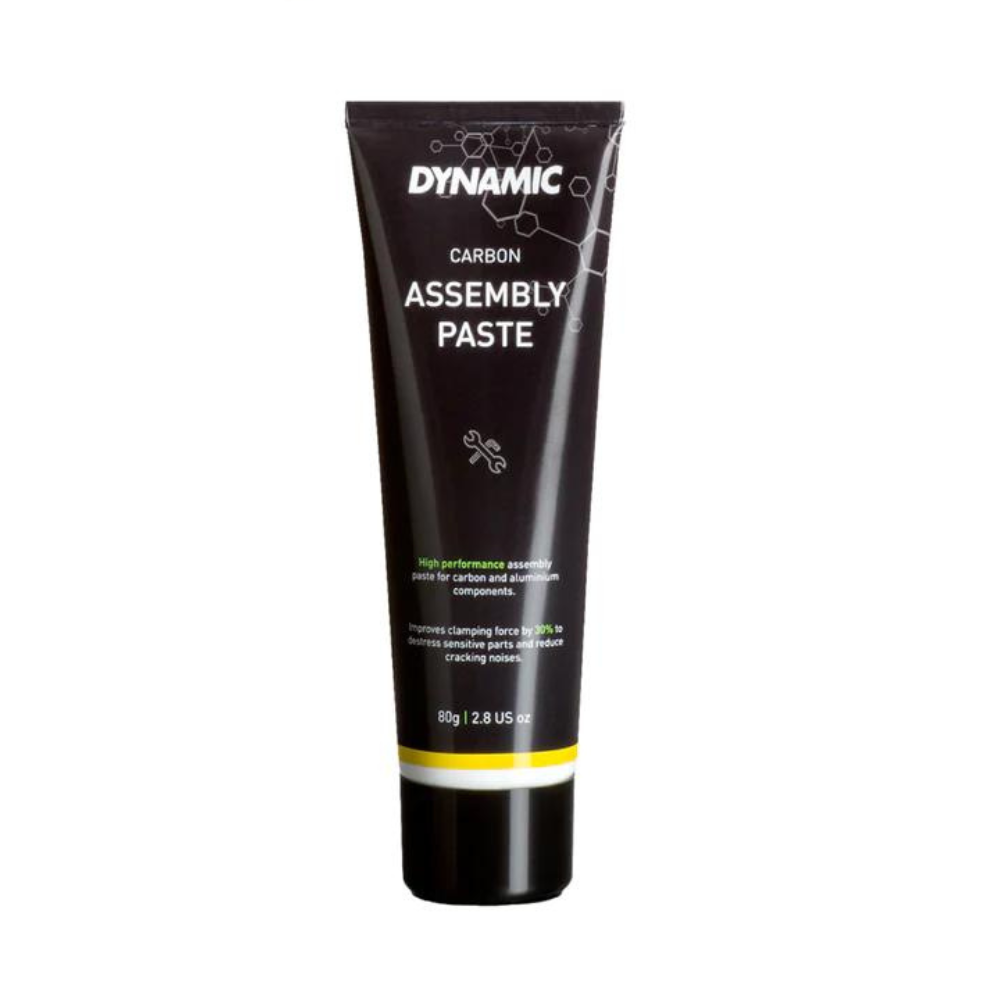 Dynamic Carbon assembly paste helps with assembling high quality carbon and aluminum bike parts by preventing the components from slipping or sliding and protecting them against corrosion. This paste lowers the required clamping force by up to 30% which prevents over-tightening and damage to the components.