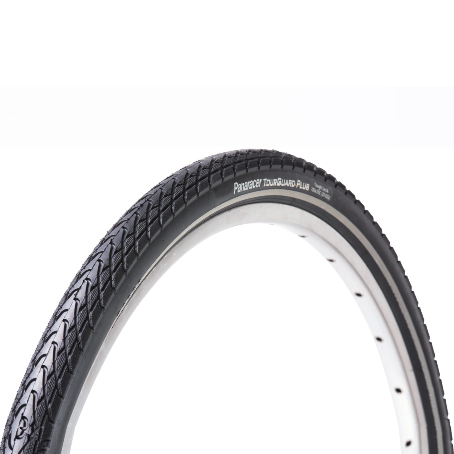 The Tourguard Plus is a super reliable urban or touring tire. It sports a bead to bead nylon puncture protection breaker for extra puncture resistance. Additionally, a 5mm layer of super tough rubber is laid over the casing beneath the tread for even great puncture resistance. Offered with or without reflective sidewalls for extra nighttime cycling safety. Excellent wet weather tread.