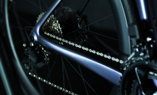 We went back to the basic philosophy of a bicycle: how do we leverage the rider’s work in the most efficient way possible? To this end, we reinforced the bottom bracket and right chainstay to instantaneously transmit pedaling power to the wheels. In addition, with one of the lightest frames at only 800 grams, it is designed to defy gravity and fly even in the most arduous of climbs.