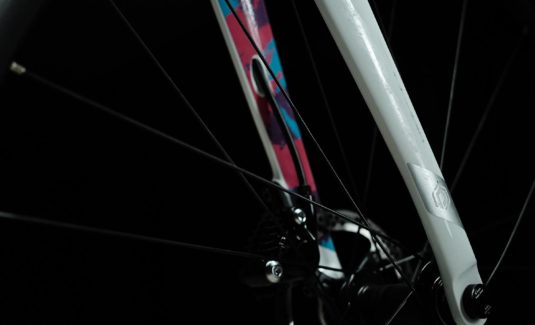 FULLY CARBON FORKS. The carbon forks aid in separating the rider from high-frequency road vibrations. While some still use an alloy steerer, the Strattos’ forks are fully carbon from top to bottom. Extra light and extra comfortable.