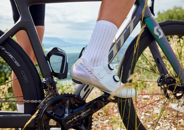 Anti-twist stabilizing structure within the heel cup offers unparalleled stability during explosive sprints. DYNALAST technology secures your foot in place, reducing power loss at the pedal and lessening fatigue during long rides, while the optimized toe-spring section reduces tension in your feet, calves, and hamstrings – so you can go further, faster.