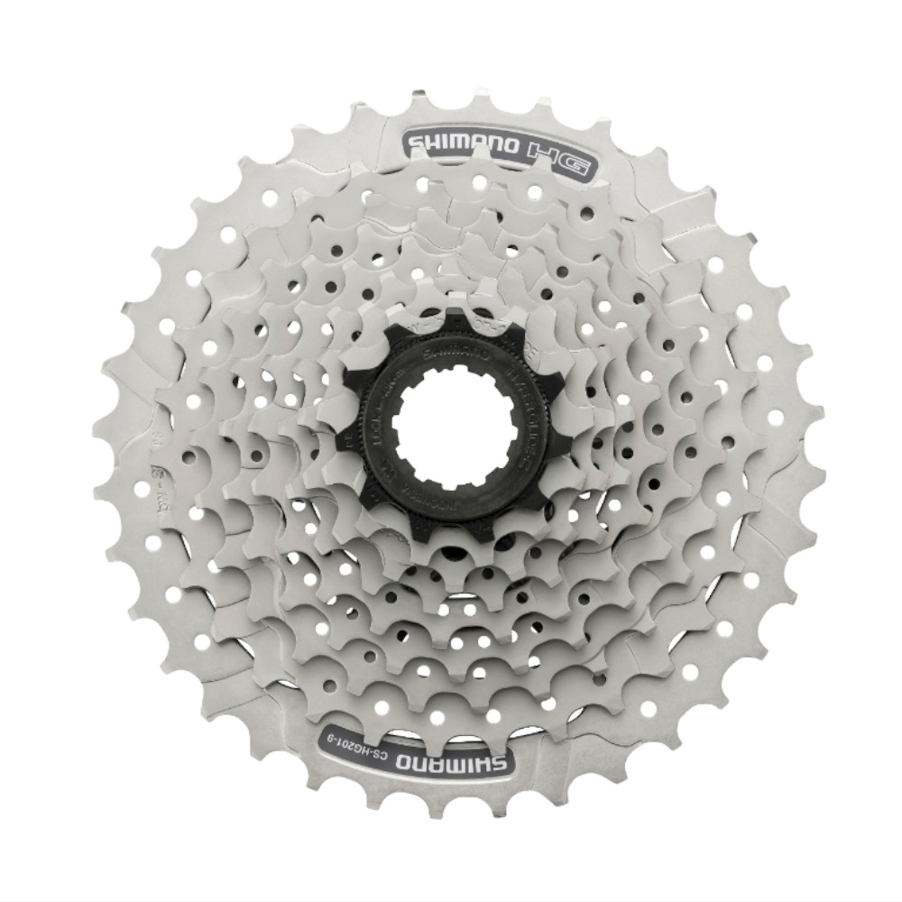 Perfect for 9-speed mountain bike drivetrains, the HG201-9 cassette offers HYPERGLIDE shifting technology and a silver finish.