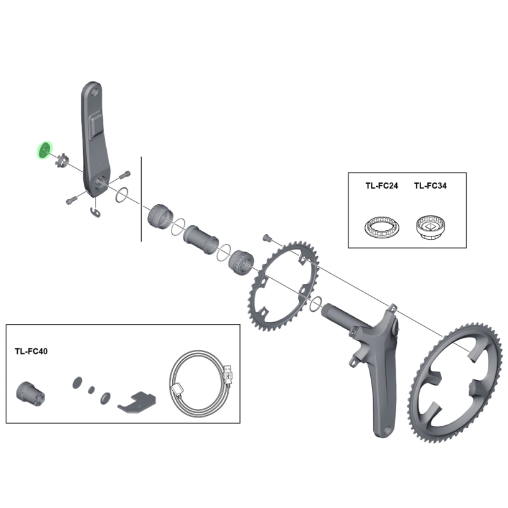 Replacement cover cap from Shimano for Dura Ace FC-R9100-P crank arm left.