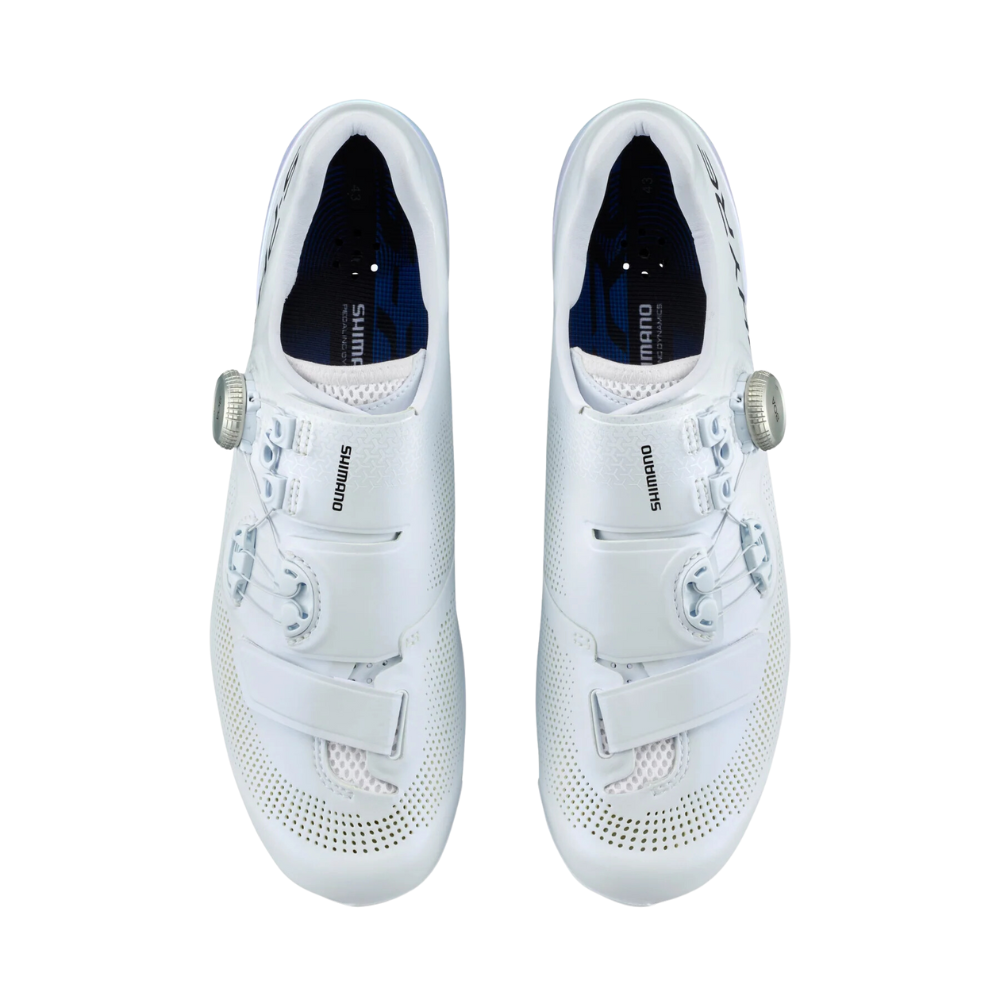 Below the S-PHYRE RC903 PWR’s single BOA dial is a Velcro strap that reduces foot movement, enhancing power transmission and enabling the use of clipless pedals with toe-straps, a popular choice among Olympic-level track racers.