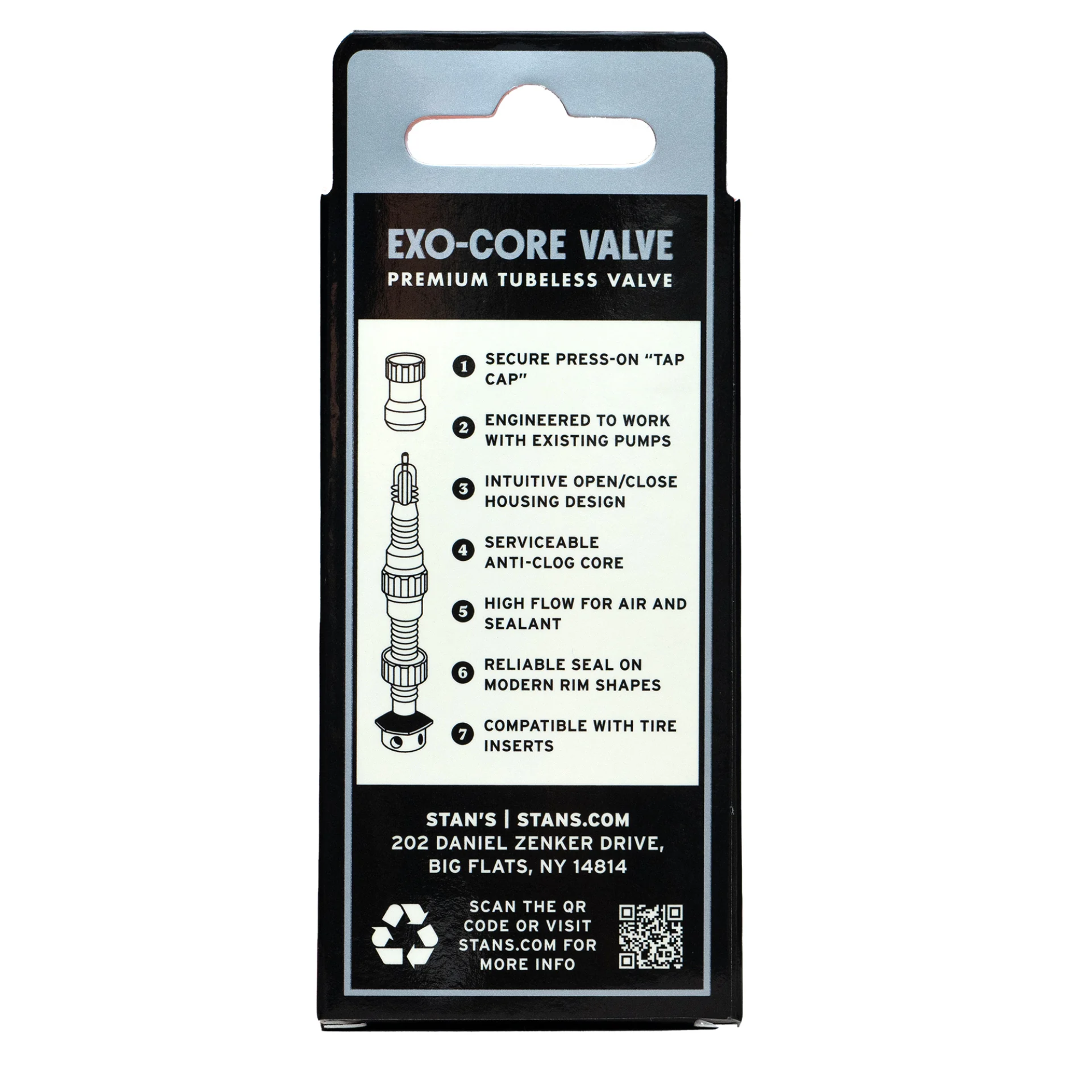 Built upon 25 years of tubeless evolution and meticulously engineered, the revolutionary Exo-Core Tubeless Valve delivers unrestricted sealant application and unparalleled airflow when setting up tubeless tires. Additionally, the Exo-Core Tubeless Valve is easily serviceable and simple to keep clean. No longer will riders and mechanics need to worry about clogged valves and serviceability in the field or at the workbench.