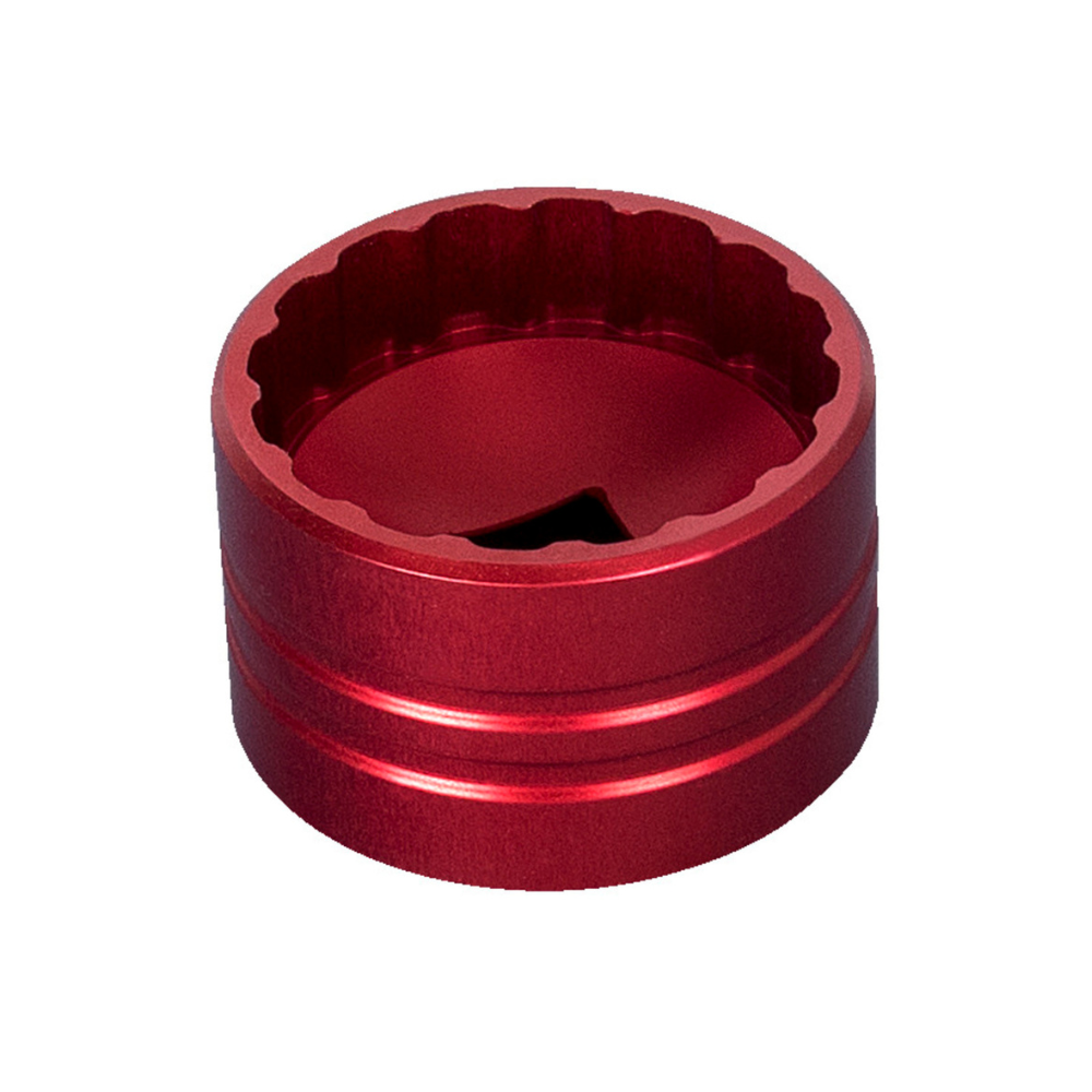 All models of bottom bracket sockets are precision CNC machined tools for installation and removal of different external bottom bracket cups. They are made of aluminum billet and anodized red for durable finish and precise fit, that won´t damage aluminum external bottom bracket cups. 1/2˝ square drive makes it easy to use with torque wrenches, ratchets and fixed handles.