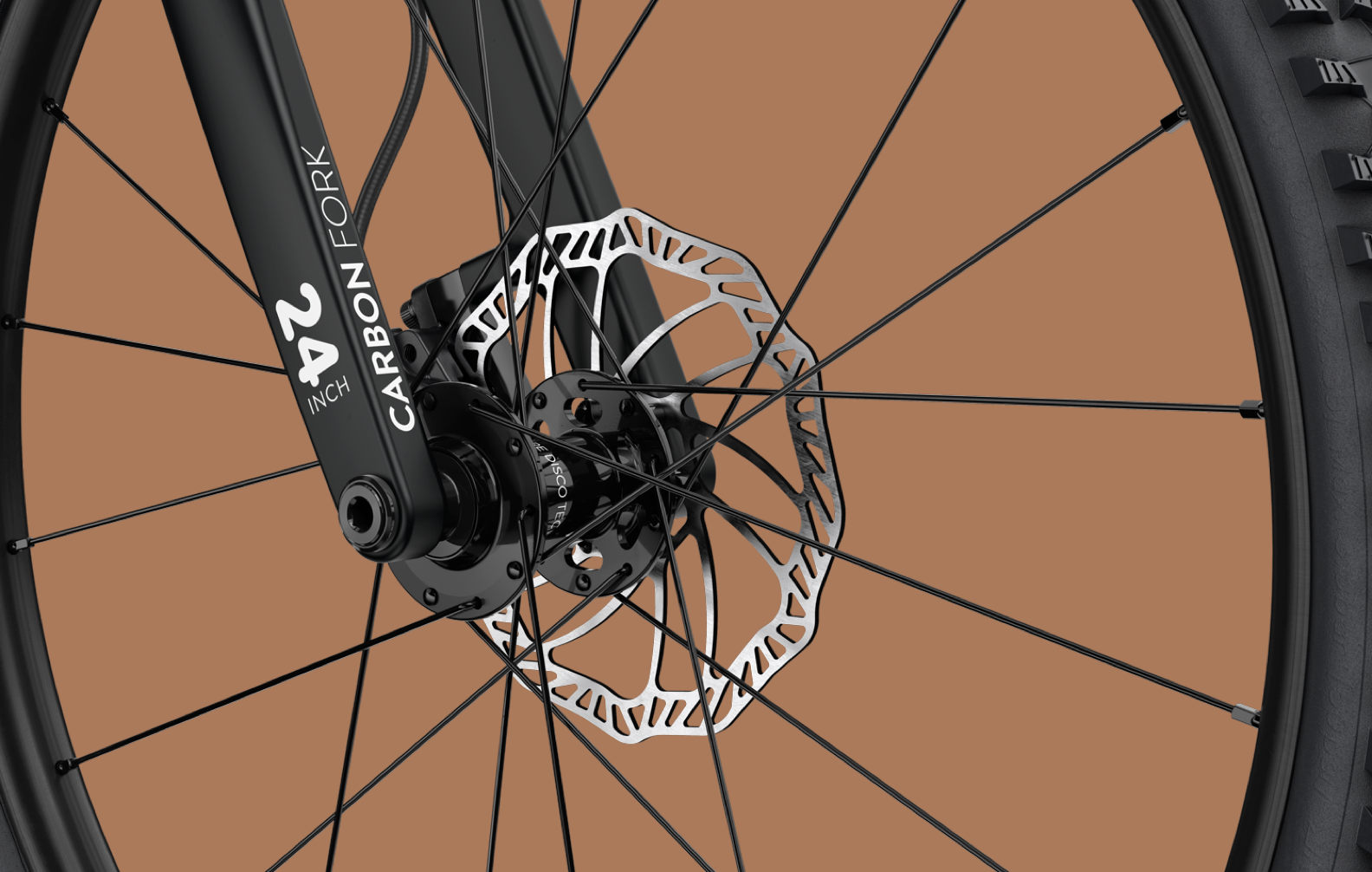 Superlight and super stylish – the carbon fork balances maximum stability with minimum weight. Multidirectional carbon fibers ensure plenty of torsional strength when steering and braking. That makes the bike strong and stable even on the roughest terrain.
