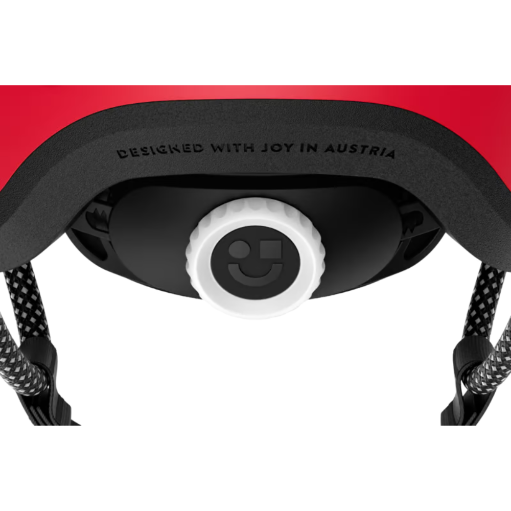 The adjustment system on the inside of the helmet takes the form of a padded ring that goes all the way around your child’s head. Simply turn the robust, non-slip size-adjustment dial to tighten up or loosen off the ring. The helmet will fit your child to perfection in a twist of the wrist.