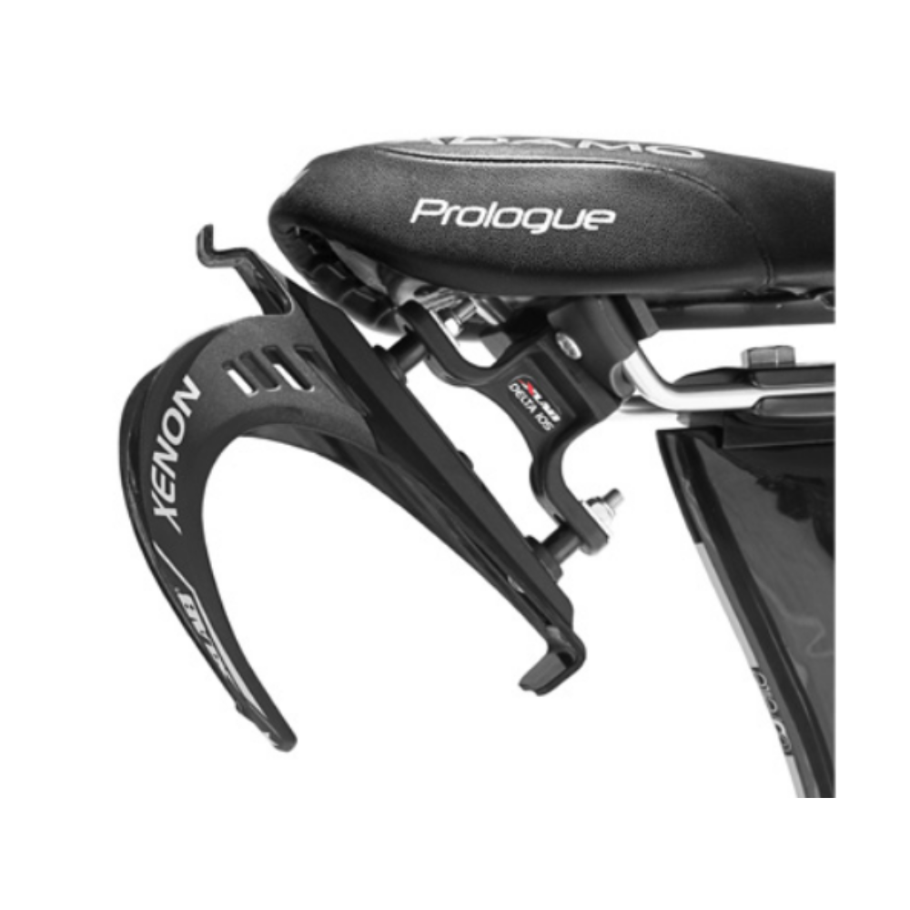 Standard frame-mounted bottles have high aerodynamic drag, so place your bottle at the rear instead. The DELTAs are mounted on the saddle rails for no measurable drag.